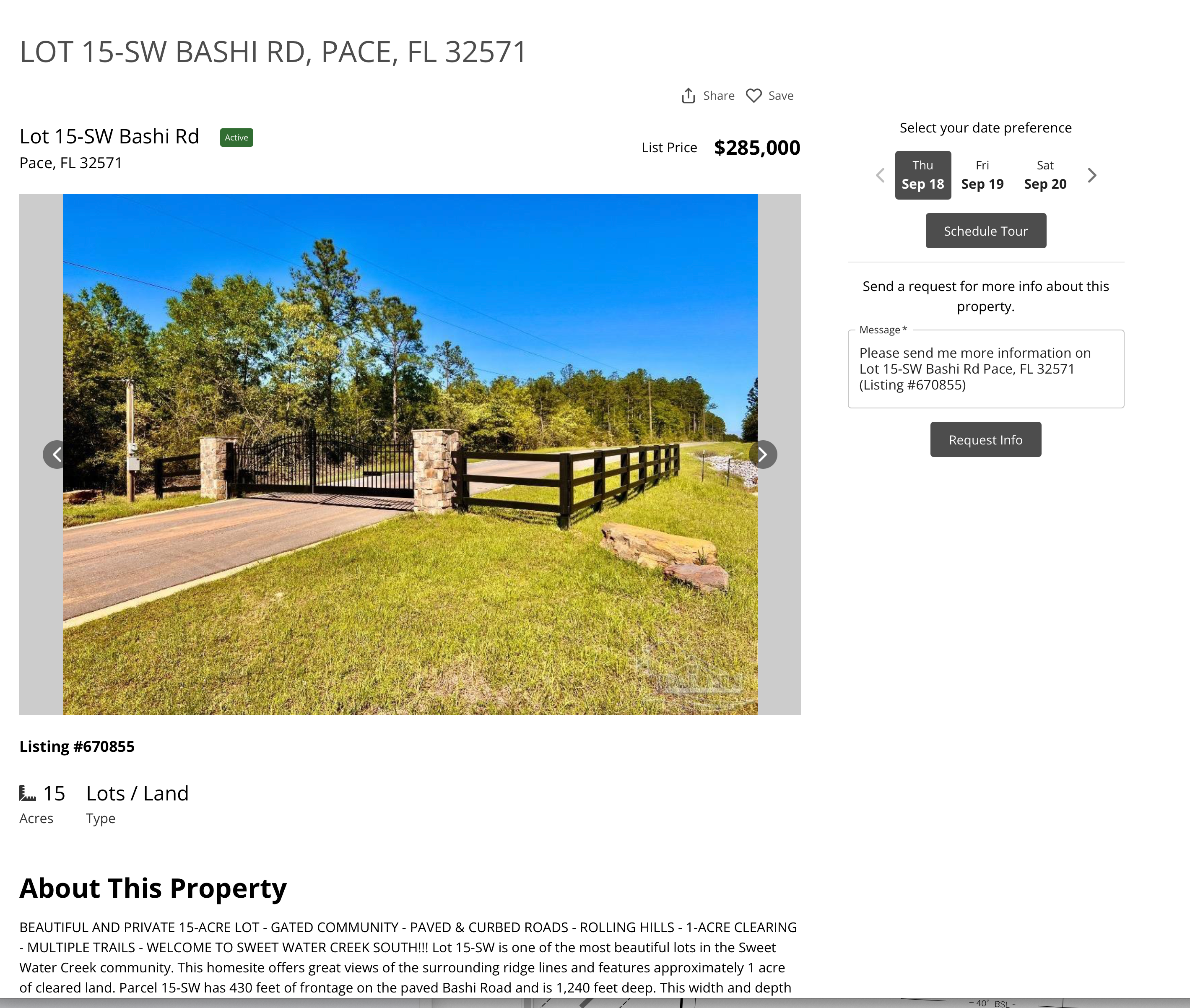 Discover prime lot listings in Molino, Escambia County, Florida.